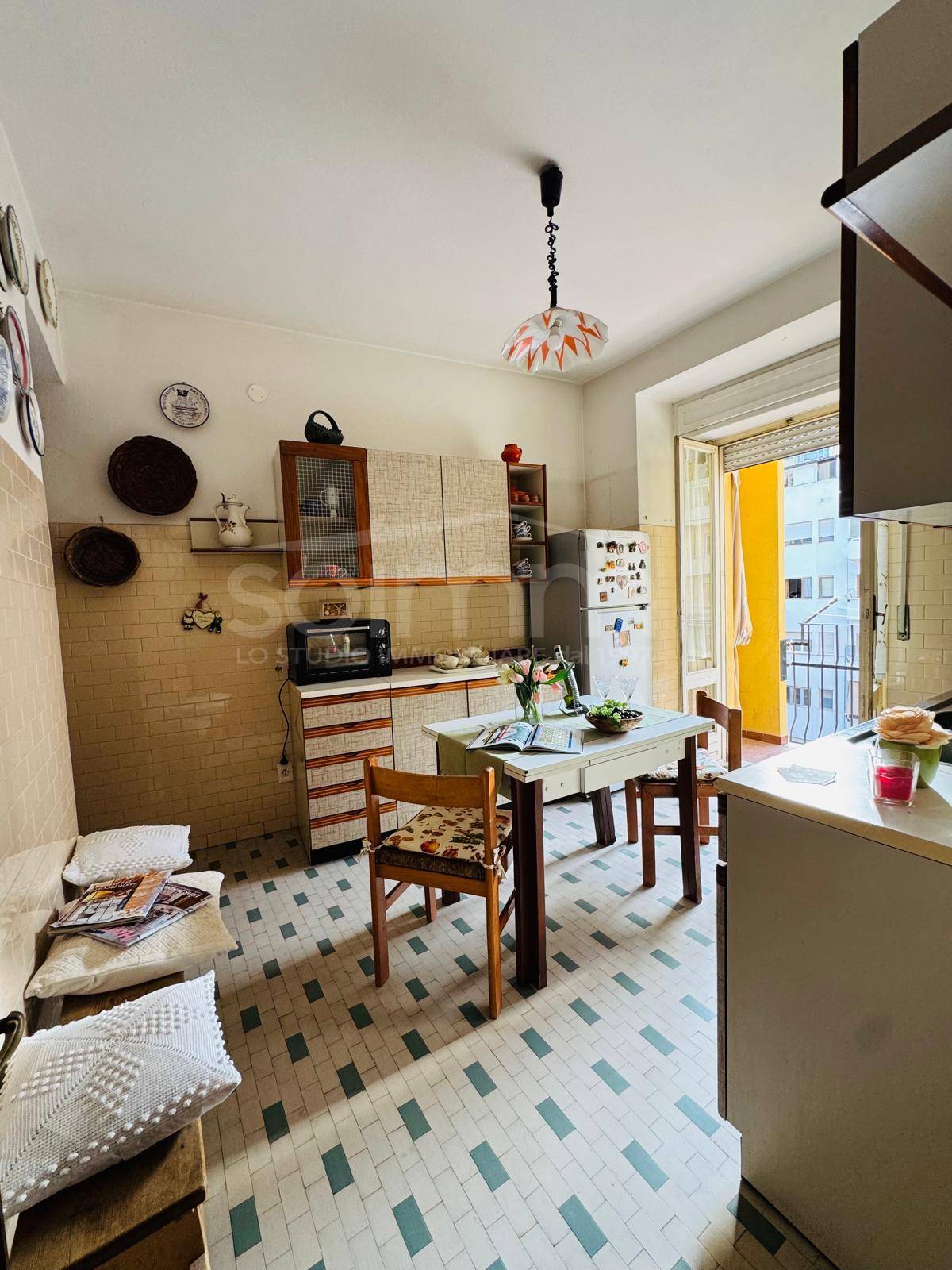 È presente una comoda e funzionale cucina abitabile con balcone di servizio, ideale per la quotidianità.