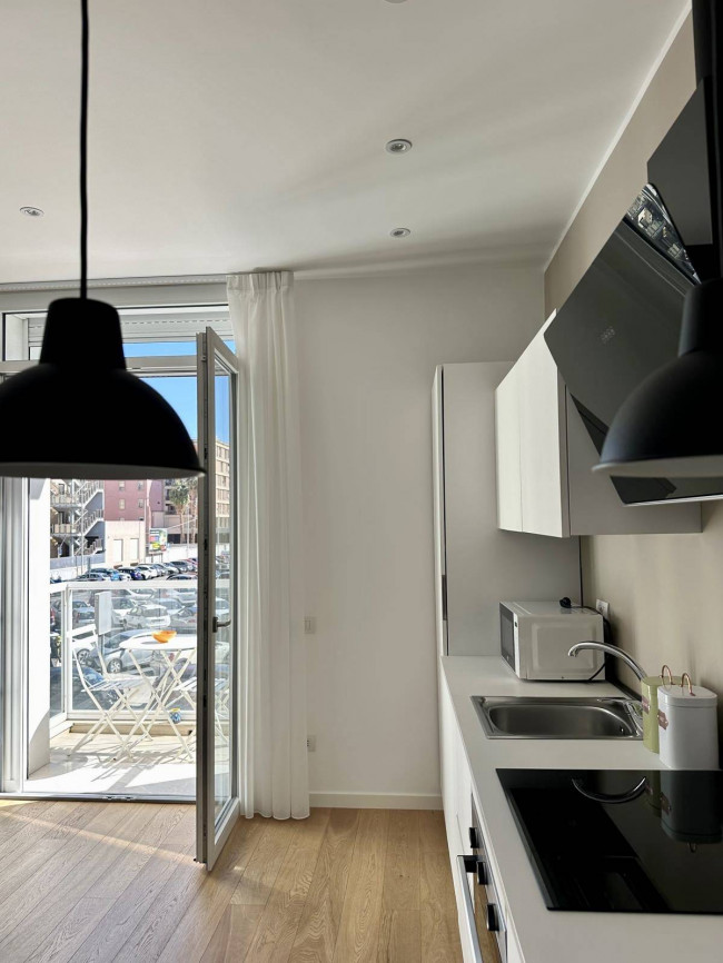 Ampio soggiorno con cucina a vista e un balconcino vivibile, ideale per ospitare un tavolino, perfetto per momenti di relax