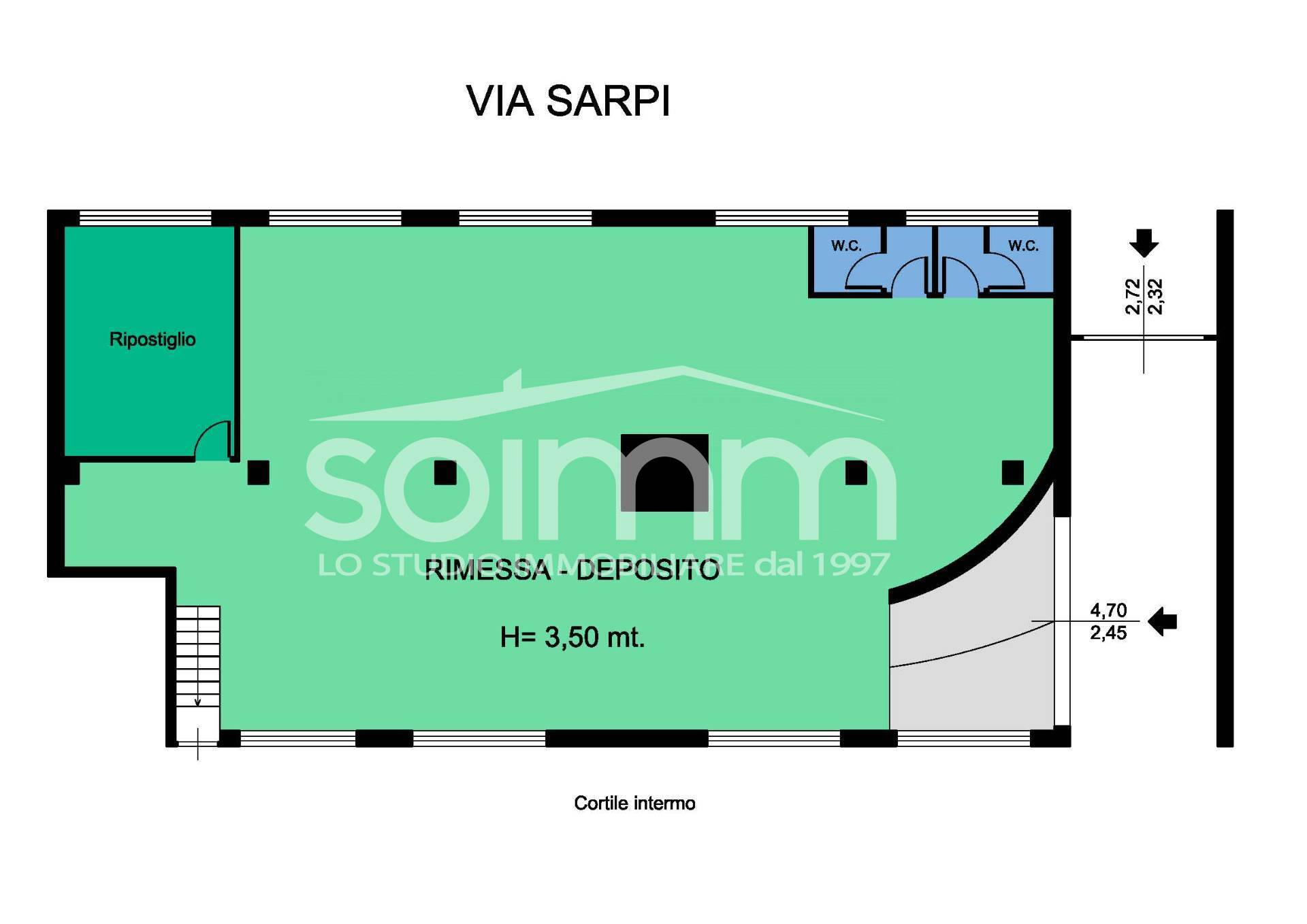 La posizione strategica e la tipologia degli spazi rendono il locale idoneo per essere utilizzato oltre che come autorimessa anche come deposito merci.